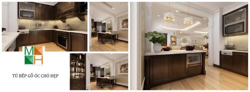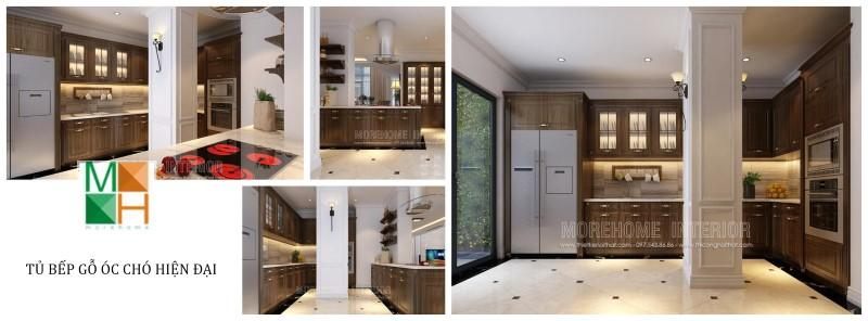 Mẫu tủ bếp biệt thự bằng gỗ óc chó đẹp cho gia chủ tại Starlake Tây Hồ Hà Nội