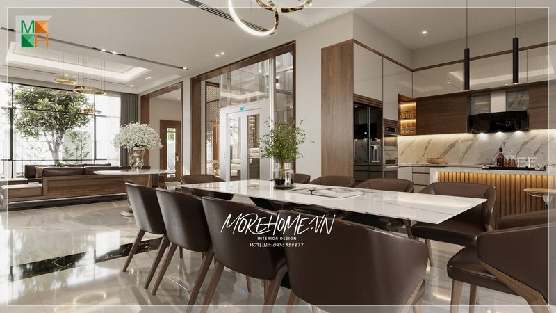 Thiết kế phòng bếp cho biệt thự theo phong cách cổ điển với sự sang trọng.